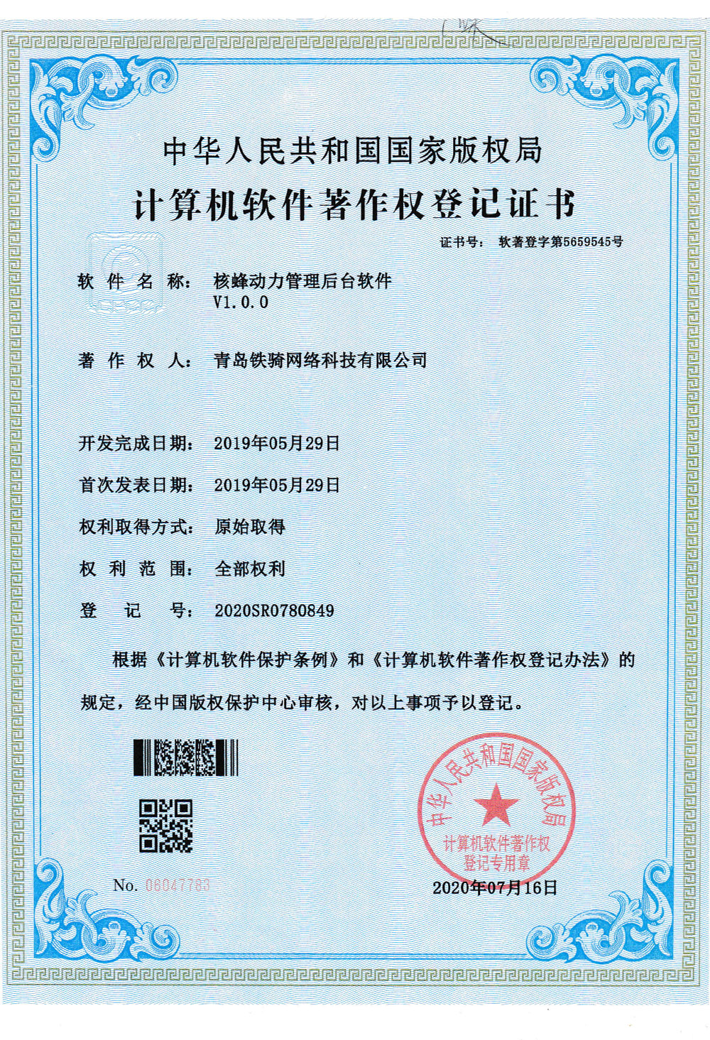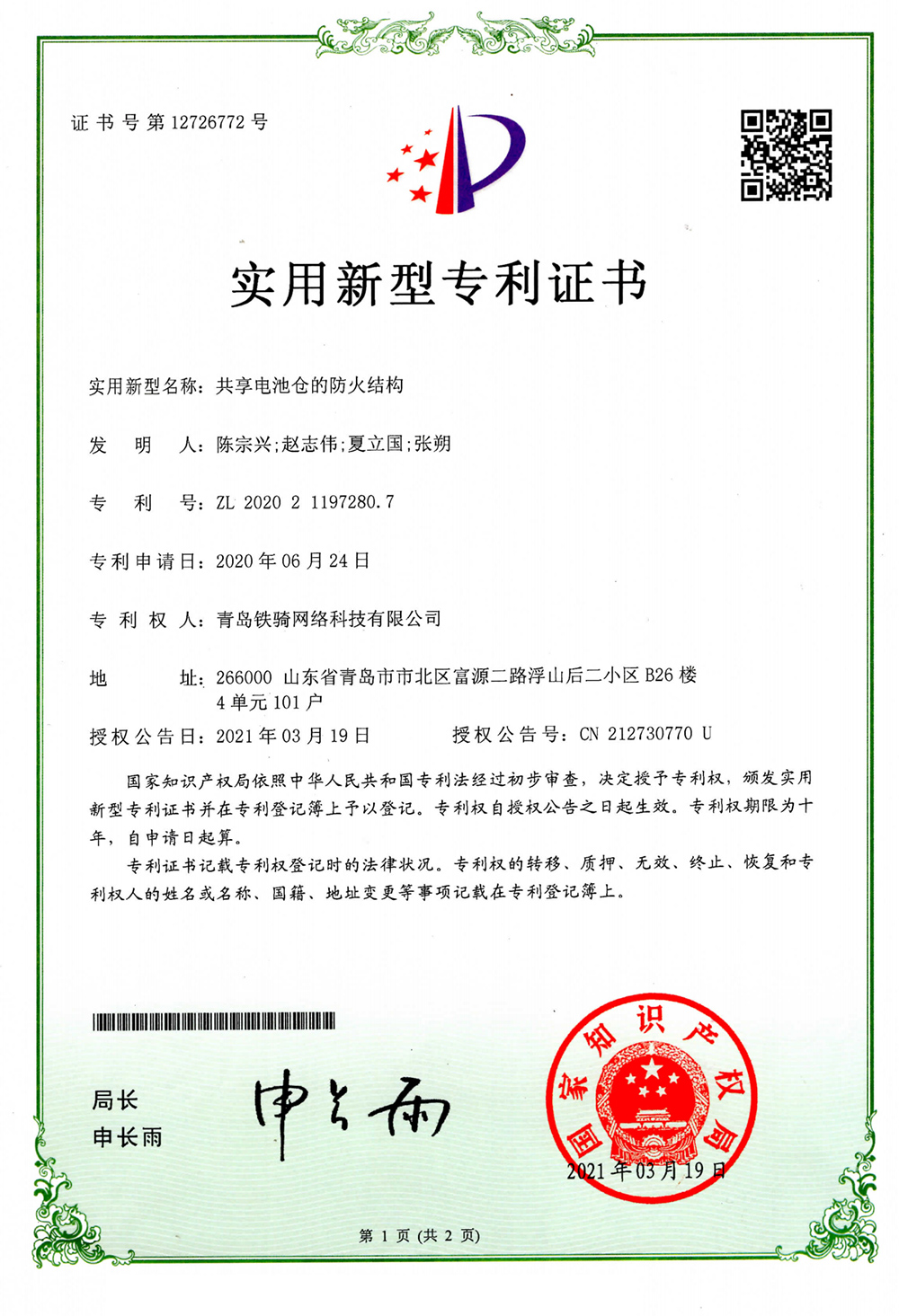 青岛铁骑网络科技有限公司作为一家专精特新企业,自主研发了智能BMS、智能锂电池、智能充换电柜、智能车辆、移动端App和运营SaaS云平台等精密科技产品,打造了 “核蜂换电”智能充换电品牌。为广大居民提供便捷、持续的能源供给服务,避免了用户自行在室内充电、集中充电中可能导致的安全问题。